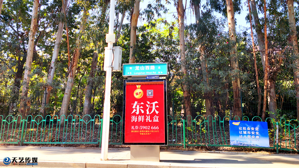 2021開年大吉,東沃海鮮與天藝傳媒攜手,全市百座路名牌提前預(yù)祝:祝廈門全市人民2021年年有余,新年節(jié)節(jié)高。