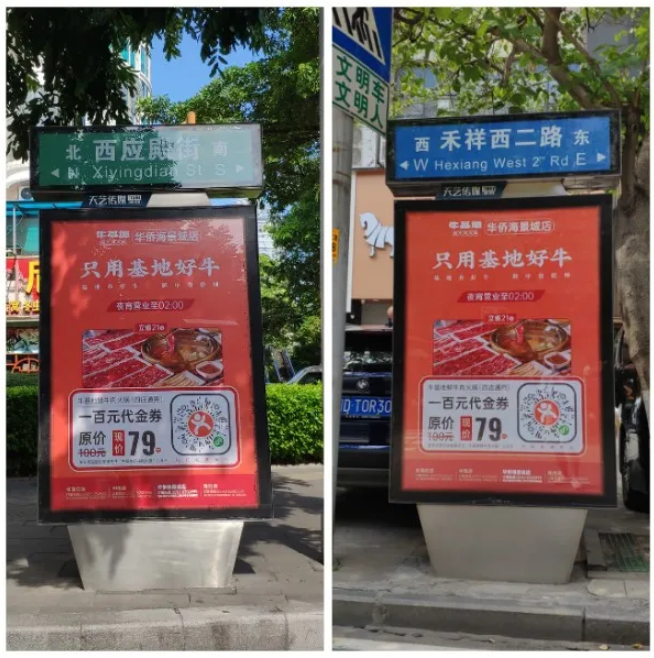 牛基地與天藝傳媒強強聯(lián)手,精準(zhǔn)宣傳將牛基地華僑海景城店附近的城市路名牌戶外媒體進行定點宣傳。