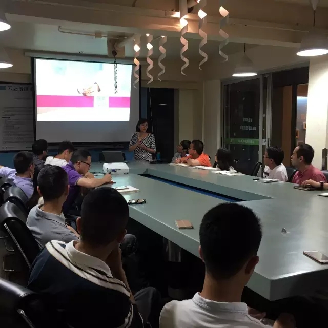“辣媽幫”華南區(qū)總監(jiān)汪碩女士為天藝傳媒員工介紹辣媽幫