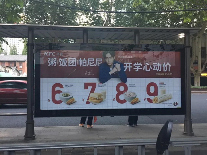 近期,肯德基又在線下投放,大街小巷都能看到肯德基的公交廣告,特別當代言人還是當下最炙手可熱的朱一龍。不少人專門去找站臺廣告合影,妥妥加強了消費者的關(guān)注度。